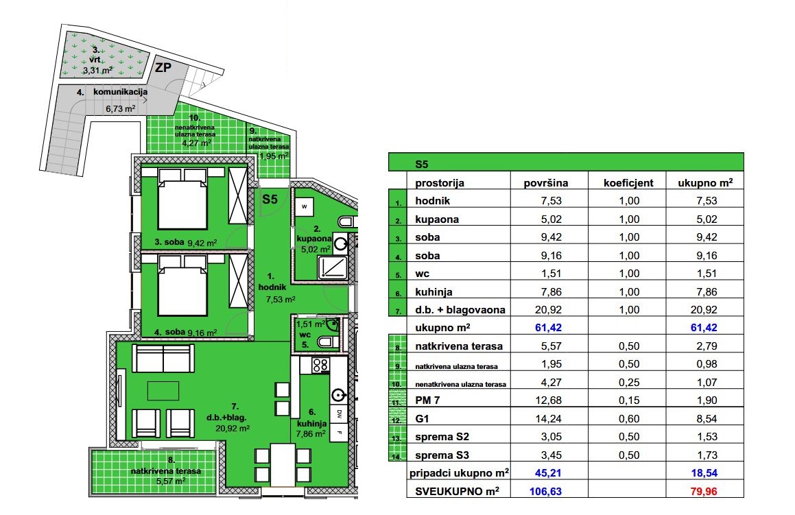 Spoločnosť HR-reality vám ponúka na predaj byt v novostavbe, ktorý sa nachádza na treťom poschodí malej novostavby bytového domu s výťahom. Byt má celkovú rozlohu 66,26 m2 a pozostáva zo vstupnej terasy o výmere 7,60 m2, chodby, toalety, kúpeľne, dvoch spální, priestrannej obývačky s kuchyňou a jedálňou a výstupom na južný balkón s otvoreným výhľadom na more. Byt je vybavený vstupnými bezpečnostnými dverami, podlahovým kúrením v podkroví, klimatizáciou, dekoratívnym osvetlením, elektrickými vonkajšími žalúziami, trojkomorovými sklami na oknách, prvotriednou keramikou atď.