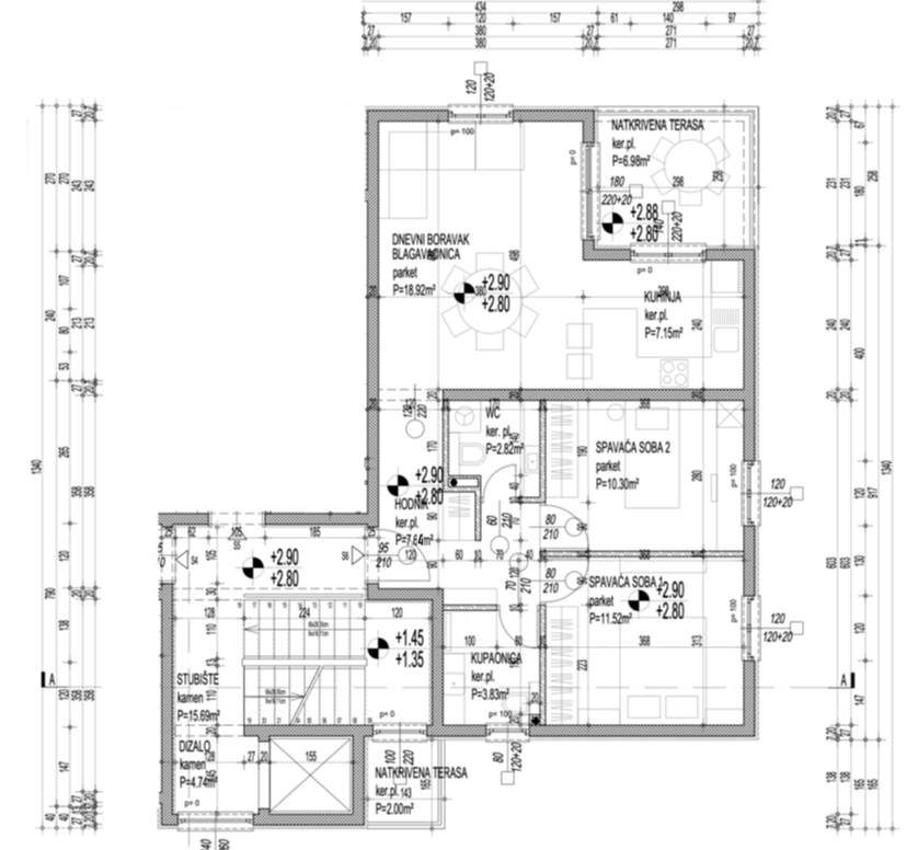 Realitná kancelária HR – reality ponúka na predaj výnimočne atraktívny dvojspálňový apartmán na prvom poschodí bytového domu v lokalite Trogir, Okrug Gornji s výhľadom na more. Pozostáva z obývacej izby spojenej s jedálňou, kuchyňou, dvoma pohodlnými spálňami, kúpeľňou, toaletou a chodbou. Z dennej časti sa vychádza na krytú terasu. Apartmán ponúka aj jedno vonkajšie parkovacie miesto a ako bonus aj úložný priestor v suteréne.